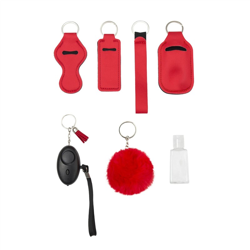 - 【Perfect GIFT for You and Her】--- 1* Personal Alarm, 1 * 30 ml Travel Bottle, 1* key Wristband ,1* Bottle Holder, 1* Lipstick Holder, 1*Chapstick Holder, 1*Pom Pom Ball, 1*Tassel. 1*Gift Box. It is a perfect gift with practical use and stylish look for yourself, mom, grandma, teenage girls to show your care and taste.