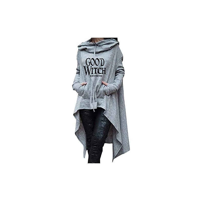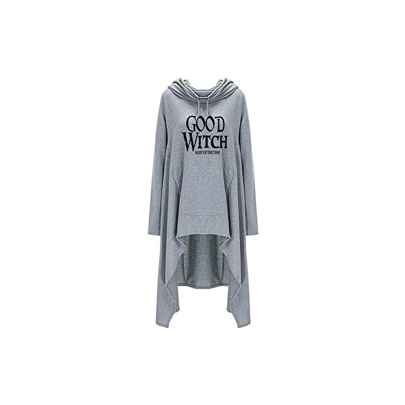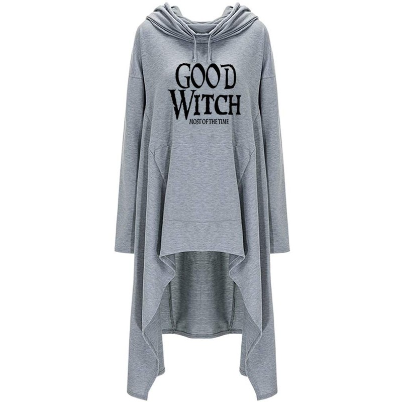 Rfecccy Women's Good Witch Tunic Casual Long Sleeve Pullover Irregular Hem Hoodies Grey