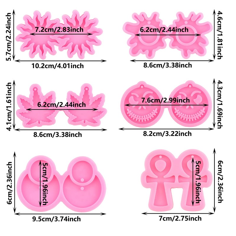 - 【Earring Mold】:You will get 6pcs Earring Mold.Include 1pcs Sun Flower Earring Mold,1pcs Maple Leaves Earring Mold,1pcs Bohemian Drop Dangle Earring Mold,1pcs Cross Earring Mold,1pcs Clown Earring Mold,1pcs Sun Earring Mold,Sun Flower Resin Molds will be an ideal combination to make a unique decorations.