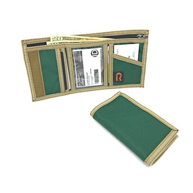 RFID Nylon Trifold Hook and Loop Wallet. w/Inside ID Window. Made in USA (Hunter Green)