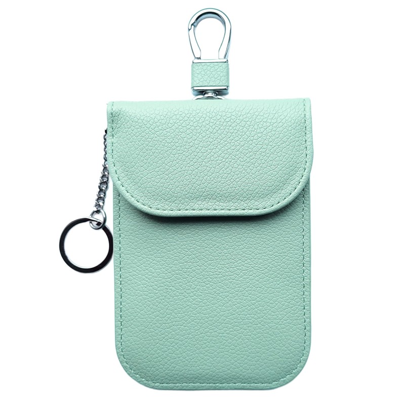 RFID Signal Blocker Faraday Pouch for Car Keys, Premium PU Leather, Jammer for Keyless Entry, Relay Attack Prevention (Light Green)