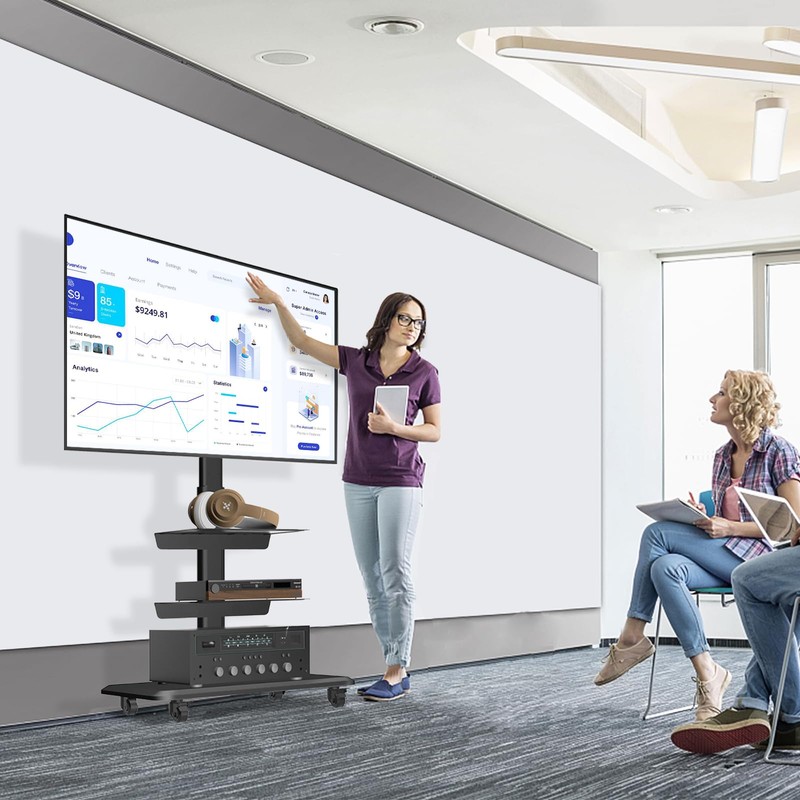 Our universal tv stand is ideal use for any location in offices, homes, schools, boardrooms, hotels, airports, lobbies, hospitals, laboratories, churches, shopping malls and more. It is a great choice for video conferencing or doing presentations at trade shows, business, PC gaming or entertainment.Stable, easy to move,