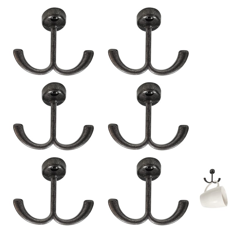 RFORPLY 6 Pcs Zinc Alloy Under Cabinet Hooks,Double Prong Drop Ceiling Hooks for Hanging Cups Bags Kitchenware Keys Plants.etc