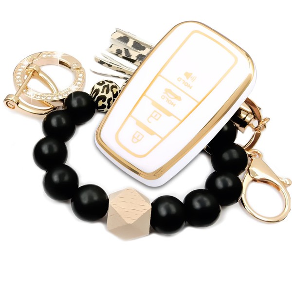 RFSRZ for Toyota Key Fob Cover with Premium Shell Wristlet 360 Degree Protection Key Case for 2018-2022 2023 2024 Camry RAV4 Highlander Avalon C-HR Prius Corolla GT86 Smart Key (White)
