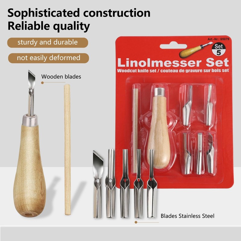 - Material: the blades of this linocut printing linocut tool are made of stainless steel, which remains bright, strong and durable for a long time. The handle part chooses the original wood colour, which is natural and beautiful