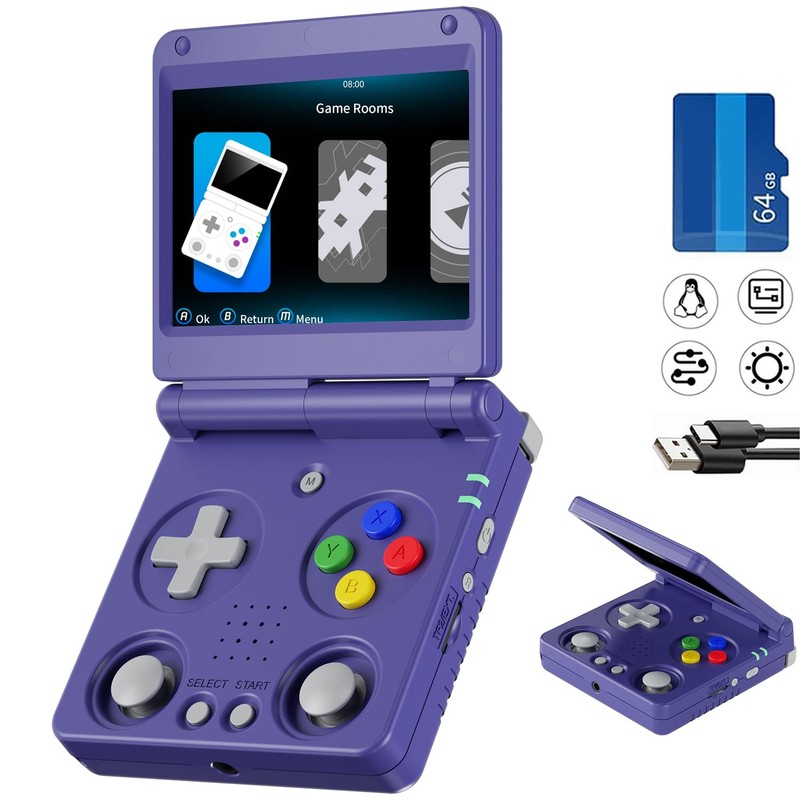 - 2. 【Retro Design and Screen】We added dual joystick to rg34xxsp, making the game more interesting. The shape is foldable. The top and bottom covers are equipped with strong magnets to support magnetic pull when closed. It also has a built-in hall switch tip that wakes up when the cover is opened and sleeped with the cover closed. 3.4 inch oca full lamination ips full screen, 720*480p resolution Easy to use screen will benefit from a comfortable image effect. You can even use it for a long time without getting tired