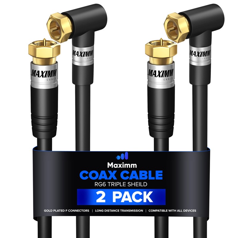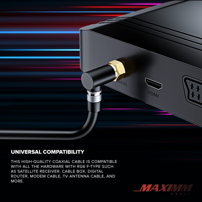 - 90-DEGREE ANGLED CONNECTOR - Our coaxial cable features a 90-degree angled connector that allows for easy connection in tight spaces behind your TV or other devices.