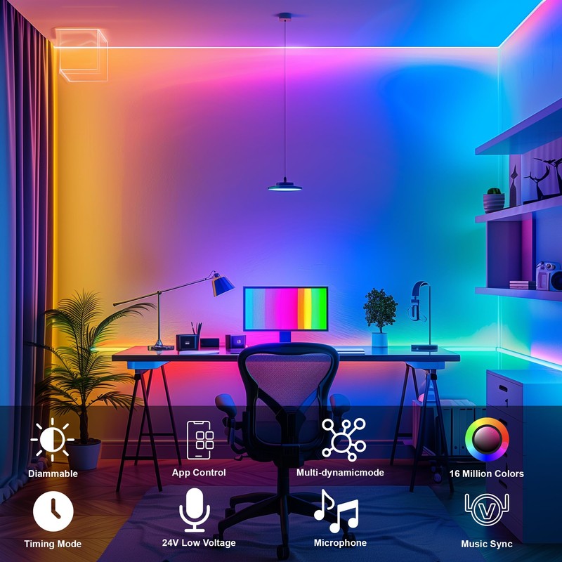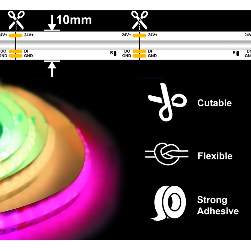 • Versatile: LED strip individually addressable is perfect for decorating your home, bedroom, living room. Cob LED strips RGB 5 m can be installed under the ceiling, on cabinets, beds, desks, stairs, etc. Widely used in scenes such as Christmas, New Year, Easter, Halloween, Thanksgiving, birthdays, weddings, etc.