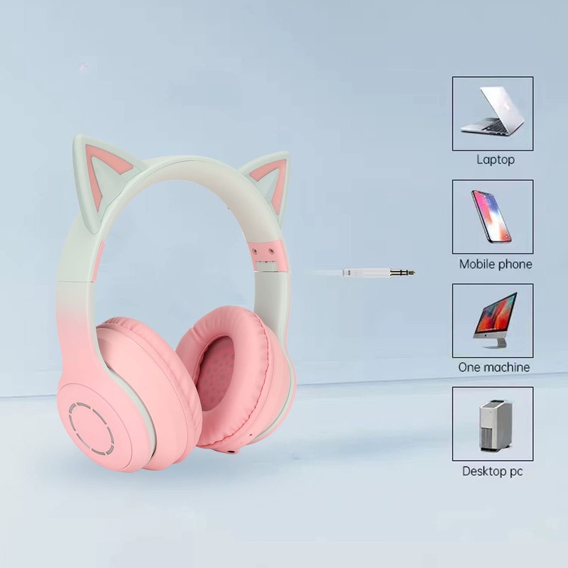 - CONNECTION METHOD: Cat ear BT headset can be connected via BT 5.1 quick connect system for stable connection within 10m. Can also be connected via the included 3.5 mm cable to turn into a wired headset.