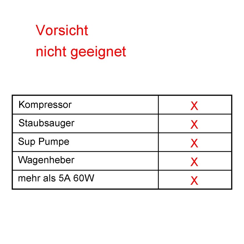 - Bitte beachten Sie: Unserer Spannungswandler 230V auf 12V eignen sich nur fr die Ger?te mit Leistung weniger als 60 Watt.