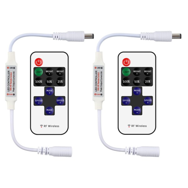 RGBZONE 2 Pack Mini RF LED Dimmer, Single Color Controller for 5050 3528 5630 Strip Lights, DC5V/DC12V/DC24V Single Channel LED Controller, 11-Keys RF Wireless Remote Control