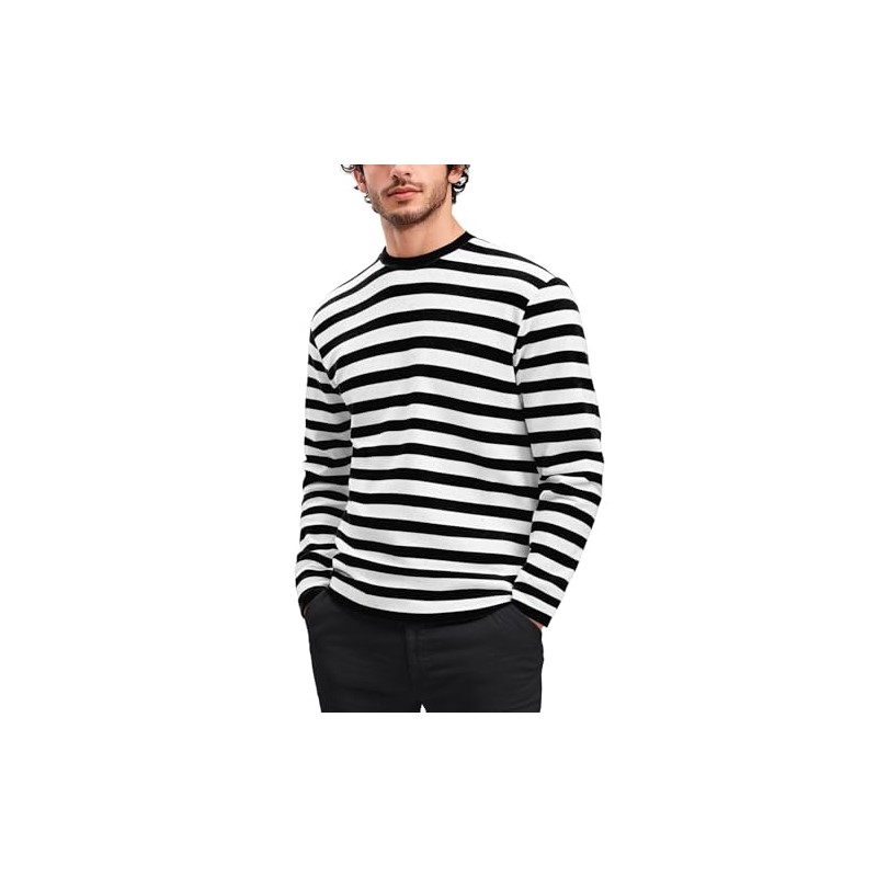RGJU Striped Shirts for Men Long Sleeve(White&Black,L)