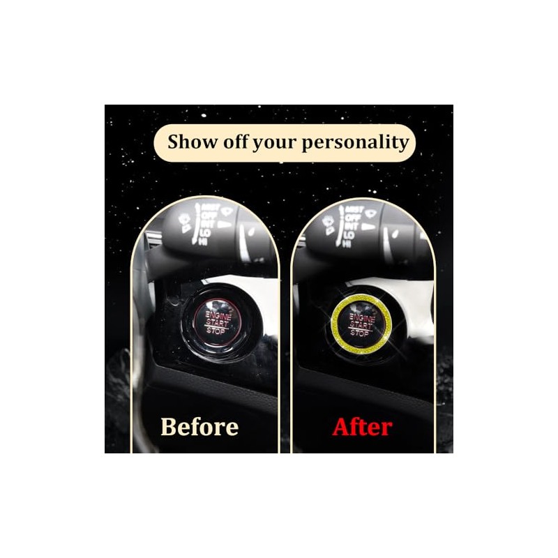- [Excellent quality] : The Push start button cover is made of high-quality zinc alloy material, durable, with good wear resistance and scratch resistance, long-term use can still maintain good appearance and performance. In addition, the diamond edge is polished, the surface is smooth and delicate, and the visual effect is more dazzling.