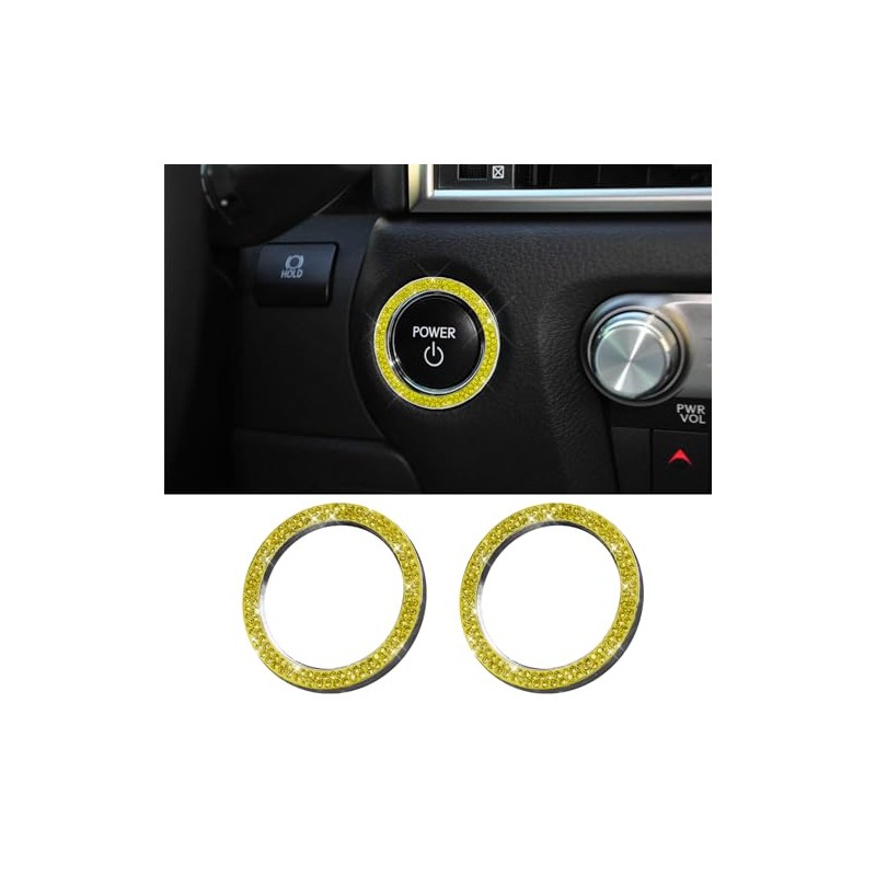 RGOAANC RGOAANC 2PCS Crystal Rhinestone Car Engine Start Stop Decoration Ring, Anti-Scratch Key Ignition & Knob Bling Ring, Car Accessories Sparkling Push Start Button Sticker for Car (Yellow, 2PCS)