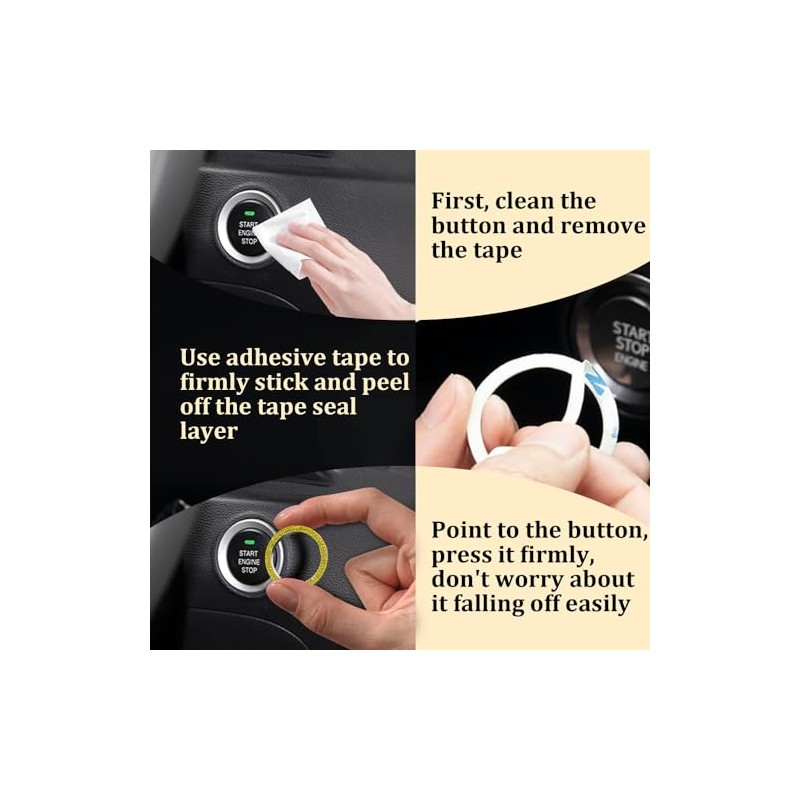 - [Easy installation] : Bling Ring Emblem Sticker back adopts 3M double-sided tape, which can be easily pasted. When using, clean the button first, remove the tape, then align the button, press hard, do not worry about easy to fall off, easy installation can be completed in a few seconds.