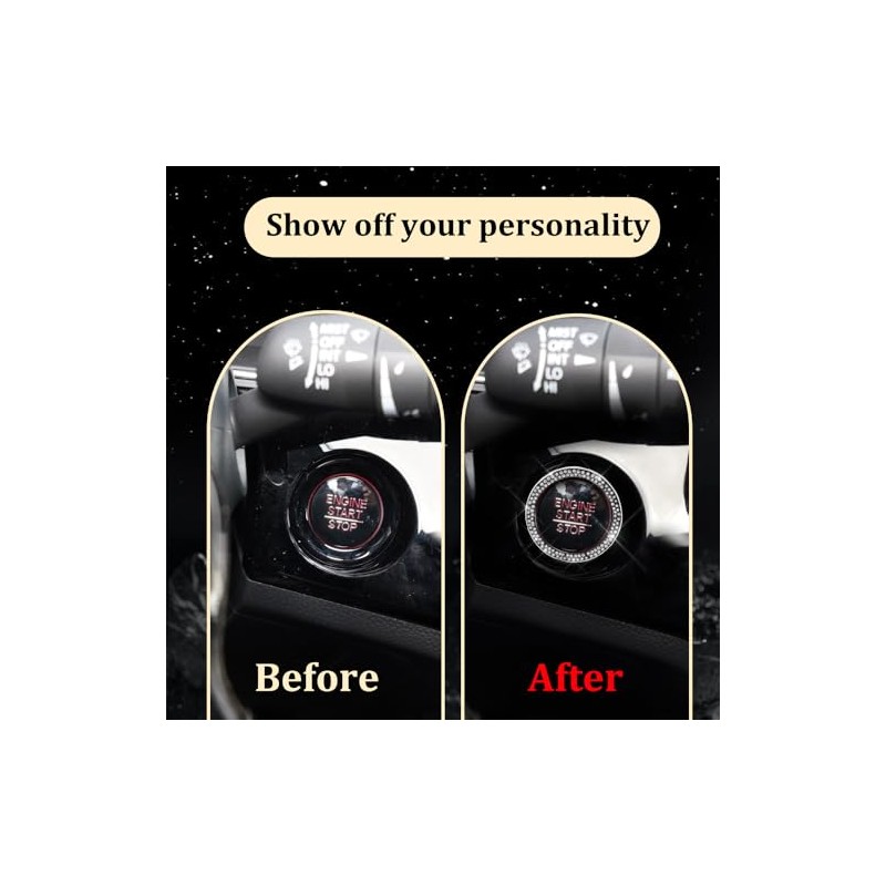- [Excellent quality] : The Push start button cover is made of high-quality zinc alloy material, durable, with good wear resistance and scratch resistance, long-term use can still maintain good appearance and performance. In addition, the diamond edge is polished, the surface is smooth and delicate, and the visual effect is more dazzling.