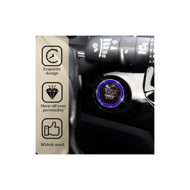 - [Excellent quality] : The Push start button cover is made of high-quality zinc alloy material, durable, with good wear resistance and scratch resistance, long-term use can still maintain good appearance and performance. In addition, the diamond edge is polished, the surface is smooth and delicate, and the visual effect is more dazzling.