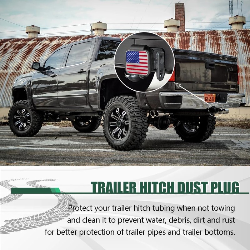 - [Beautiful accessories] : The 2 inch trailer hitch cover has a smooth and compact exterior design, and the top design has a classic American flag pattern, which is very beautiful and fashionable. It can not only bring different color styles to the vehicle, but also express your love for the country well. The 2 inch trailer hitch cover plug is a beautiful and practical automotive exterior accessories