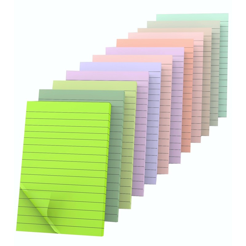 RHAWOM 12 Pads Lined Sticky Notes 4x6, Multi-Coloured Pastel Post Note Ruled, 12 Colors Self -Stick,School Home Office Suppliers (Fresh Colors)