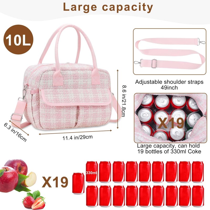 - 1. 🍓 FASHIONABLE DESIGN + SOFT TOUCH Insulated Lunch Bag is made of lightweight, soft and elegant Little Fragrance fabric, incorporating gold thread, silver thread, silk thread or other bright color yarn as embellishment. These shiny elements are like the finishing touch, from a distance it looks like a certain dominant color, but up close it is full of rich color details and texture variations, highly acclaimed for its elegant appearance, more suitable for adult aesthetics, breaking through the age boundaries, lunch bag designed for women