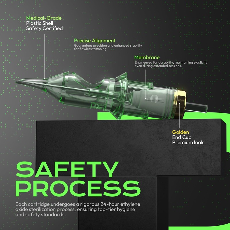 - Reliable cartridges: Our cartridges are made of rust-proof 304L steel and are 100% sterilised with ethylene oxide.