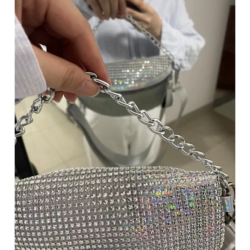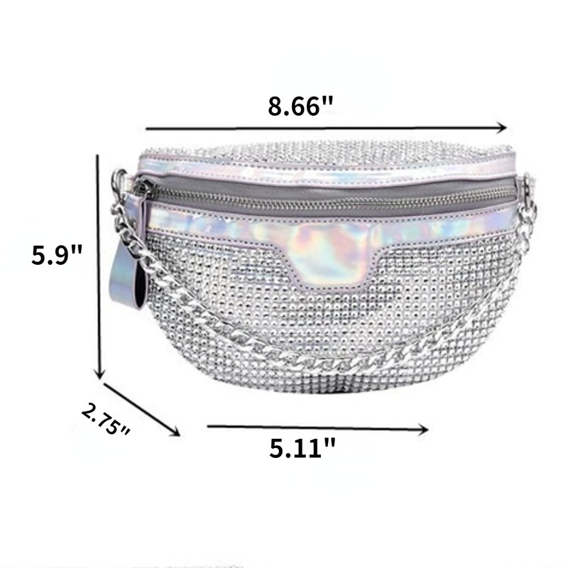 Rhinestone Chest Bag For Women Fanny Packs Belt Bags Crossbody Bags Waist Pouch Purse for Girls Party Outdoor Traveling Beach (Silver)