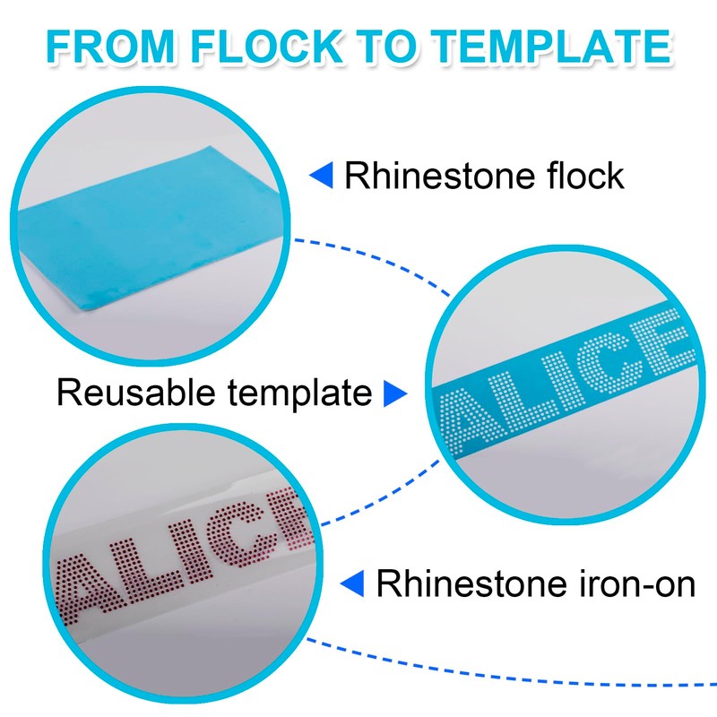 - What is inside: The rhinestone sticky template material stencils kit comes with 12"x12" 30x30cm 3 Pcs flocks (make intricate rhinestone templates), 5 Pcs hotfix transfer tapes (transfer rhinestones to fabrics), 1 Squeegee (clear the cutouts off the cutting mat), User manual