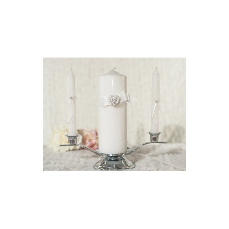 - Rhinestone Pearlized Heart Rose Bouquet Wedding Unity Candle Set
