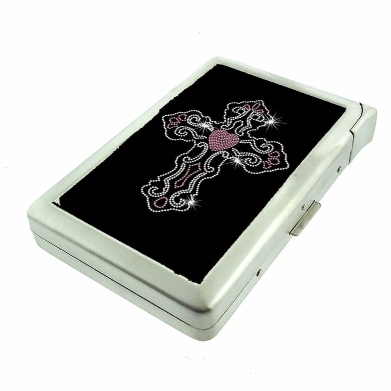 Rhinestone PRINTED Bling Cross y2k 100's Size Cig Case w/lighter Metal Wallet