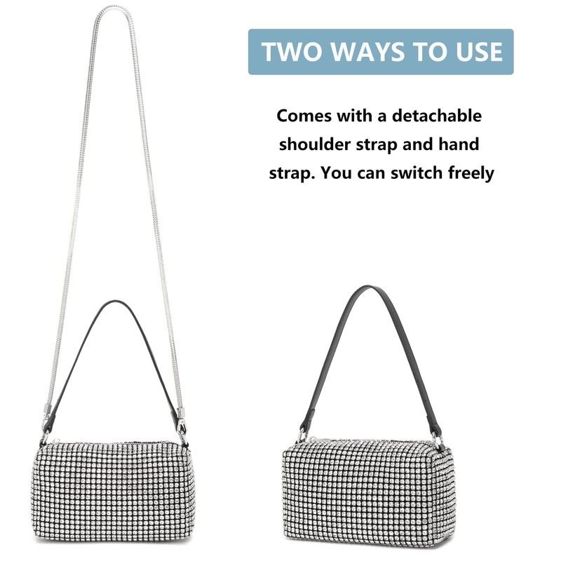 - Capacity: The spacious space can accommodate mini wallets, cosmetics, skin care products, keys, sunglasses and mobile phones, etc. This rhinestone shoulder bag meets most of your daily needs