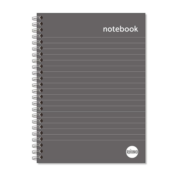 RHINO A5 Spiral Notebook, 160 Page / 8mm Lined Writing Book, 1 Pack, Hardback & Wirebound Pad, School & Office Stationery Supplies