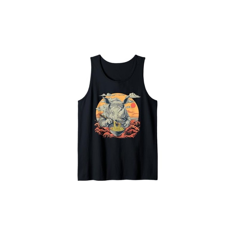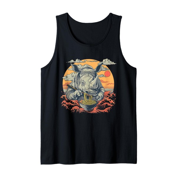 Rhino Eating Ramen Japanese Noodles Rhino Ramen Bowl Sunset Tank Top
