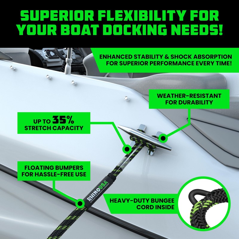 Rhino USA 4' Bungee Dock Line for Boats - Ultimate Docking Ropes for Jet Skis, Kayaks, Fishing Boats and More! Perfect for Mooring or Other Wet Slip Applications - Black
