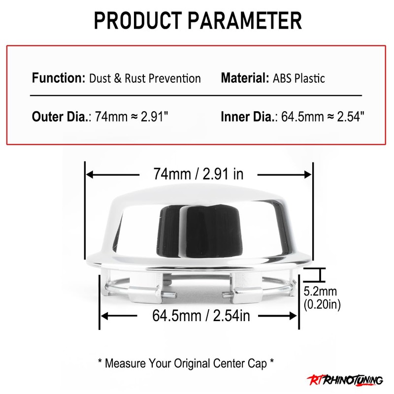 - Check the measurements of your wheel center caps to verify if this item will work on your vehicle.