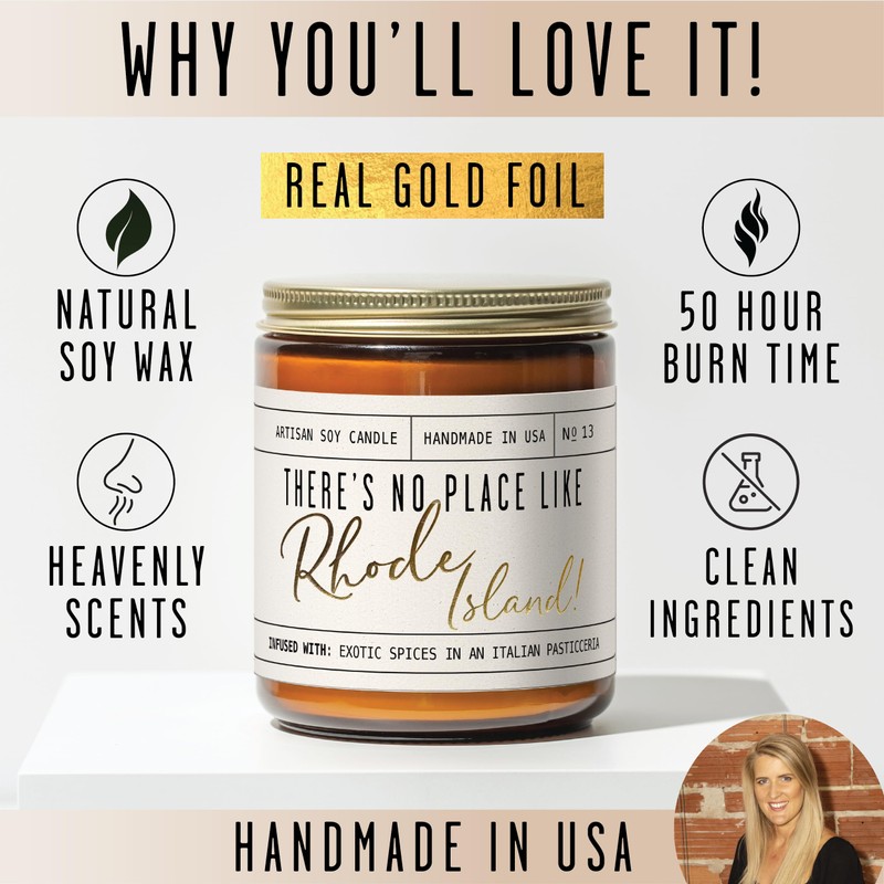 - CELEBRATE LIFE IN NORTH RHODE ISLAND – Our ‘There’s No Place like Rhode Island’ soy candle with gold foil writing is the perfect gift for those who love the State.