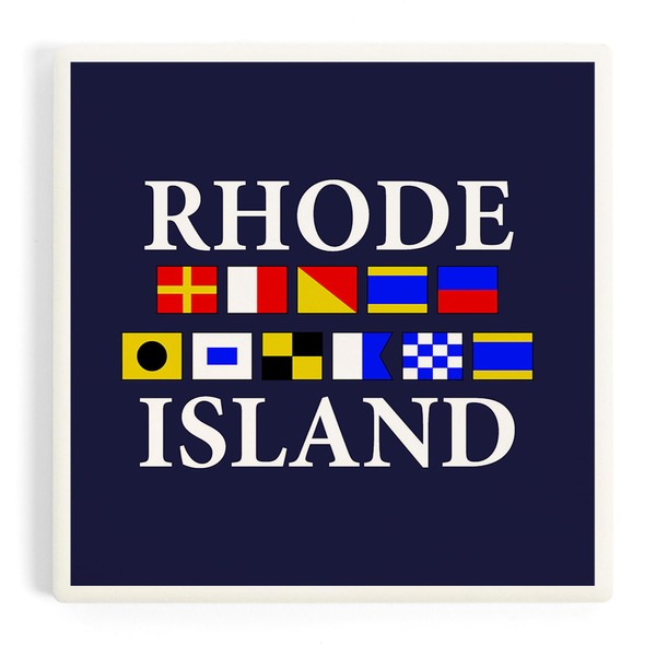 - Rhode Island, Nautical Flags (Absorbent Ceramic Coaster, Single, Cork Back, Kitchen Table Decor), each coaster measures 4x4 inches.