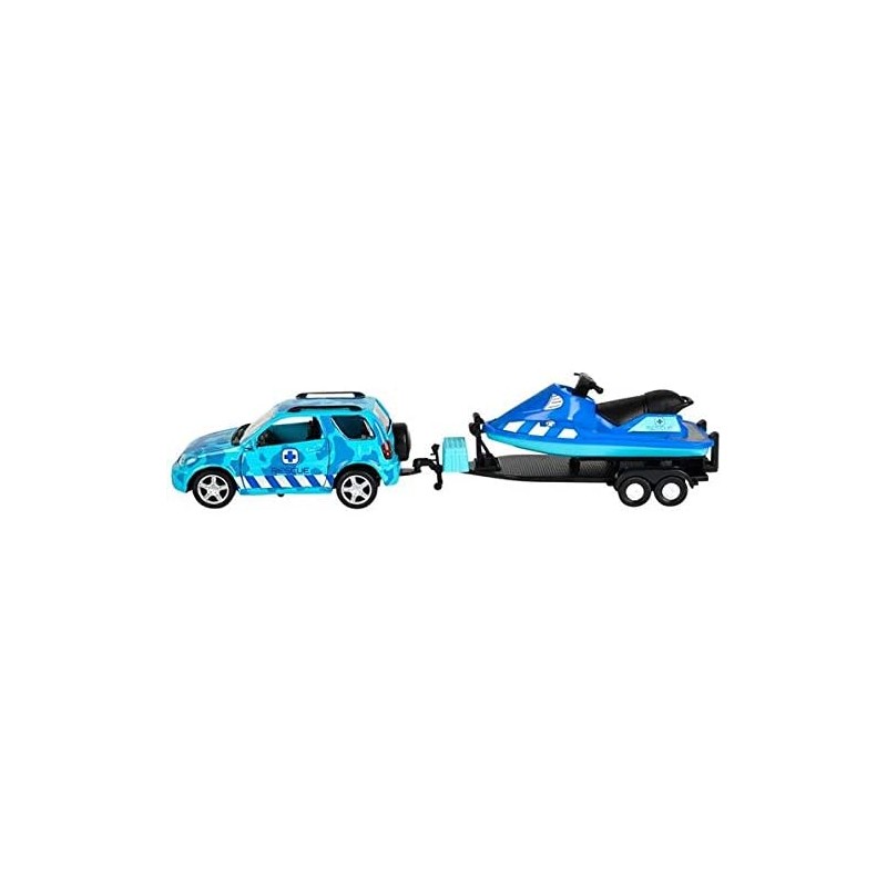 - Set comes with Jet Ski, rover and trailer. Each piece comes in colorful printed window box packaging. For ages 5+.