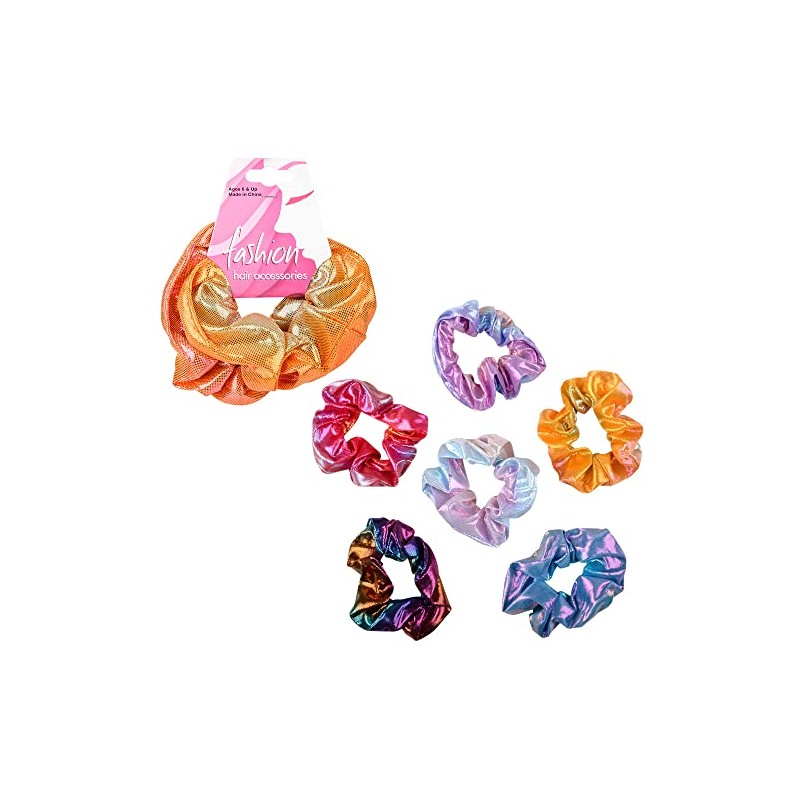 - Metallic Scrunchies Packaged in poly bag 2 scrunchies on fold-over card 12 cards per unit (24 total scrunchies per unit) Ages 3+