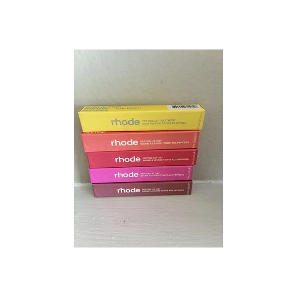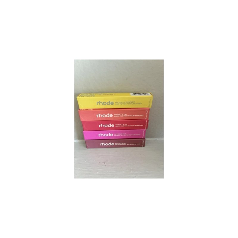 Rhode lip peptide in these limited edition come together as a set of five, passion fruit, guava spritz, short cake, peach pit, salty tan. Passion fruit is the only one that is scented and clear. The other four are non scented and have a tint of color to them. All brand new