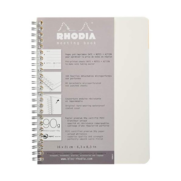 Rhodia Meeting Paper Book 80g Paper - Lined 80 sheets - 6 1/2 x 8 1/4 - White Cover