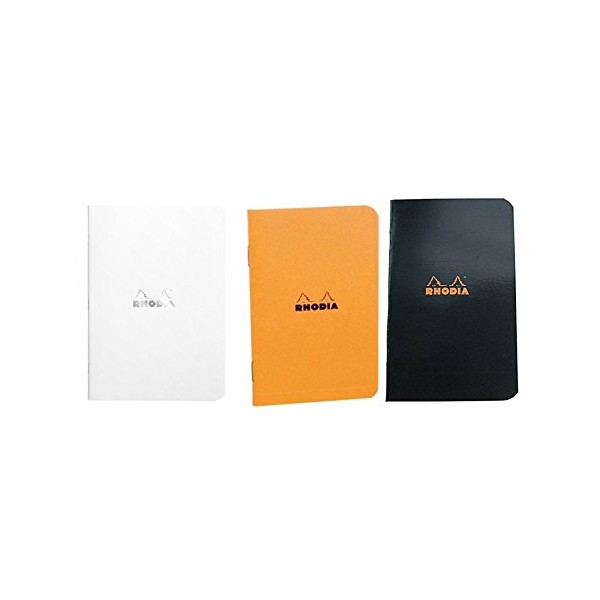 Rhodia Side Staplebound Pocket Notebook (3 X 4.75) Orange, Black and White, Pack of 3