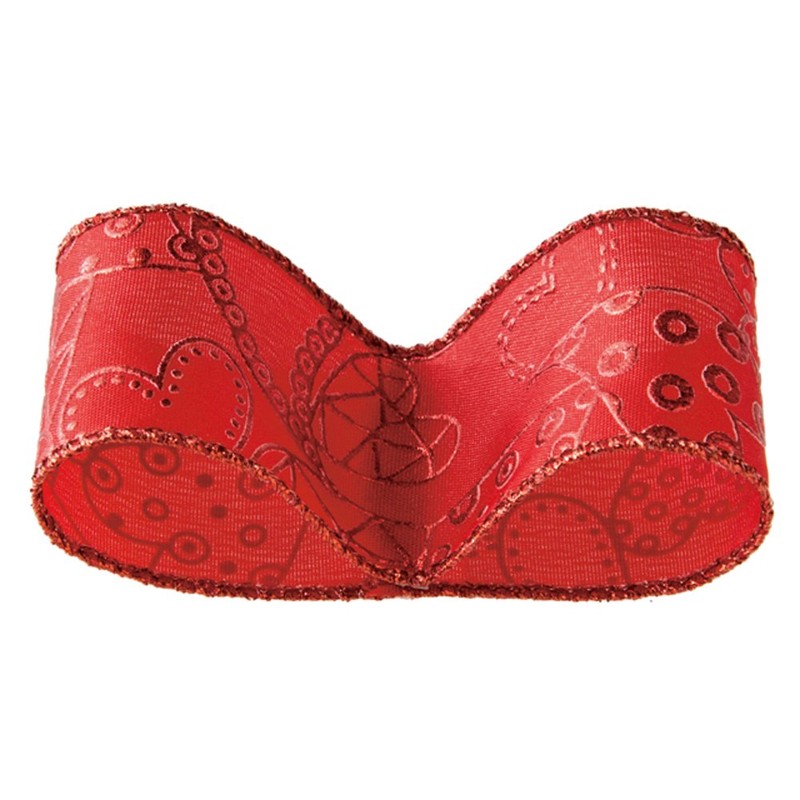RHT-R1 Wire Ribbon, Red, Heart Pattern, 1.6 inches (4 cm) Wide, 32.8 ft (10 m) Roll (1 Roll)