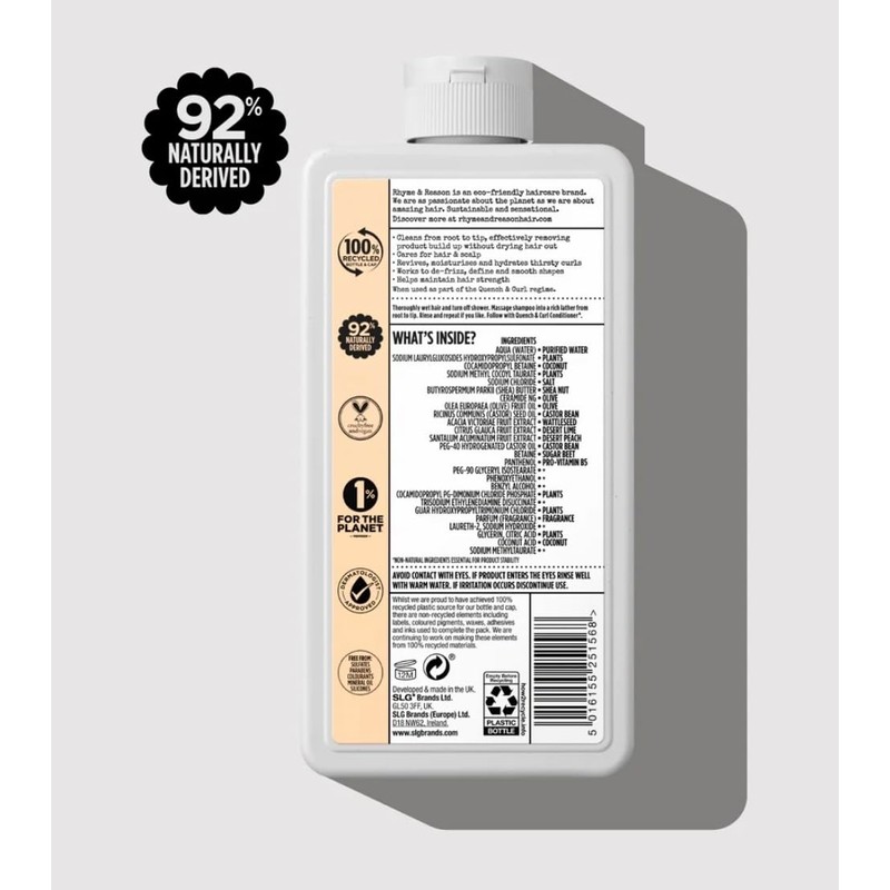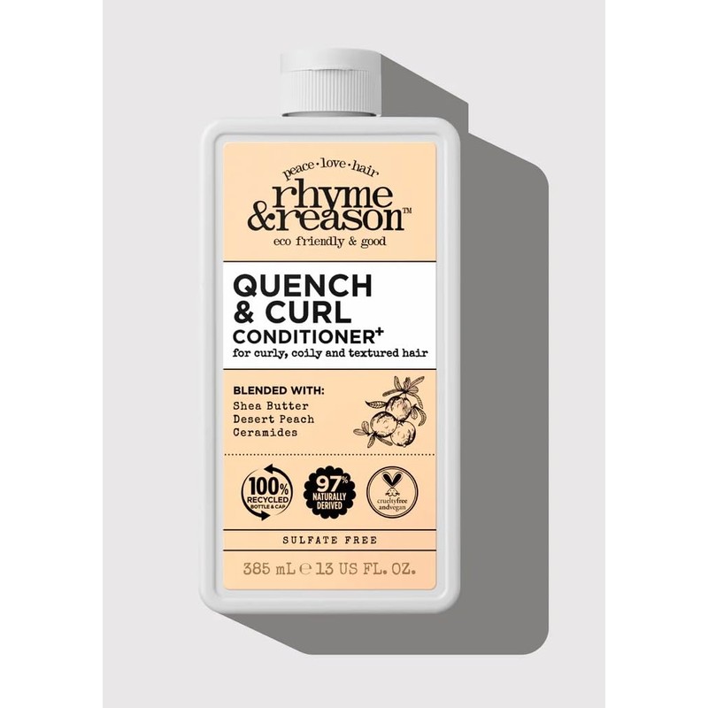 Rhyme & Reason Quench and Curl Shampoo & Conditioner Set. 13 Fl Oz Each Bottle. For Curly, Coily, Textured Hair. Blended with Shea Butter, Desert Peach Ceramides. Vegan, Sulfate Cruelty Free., Clear