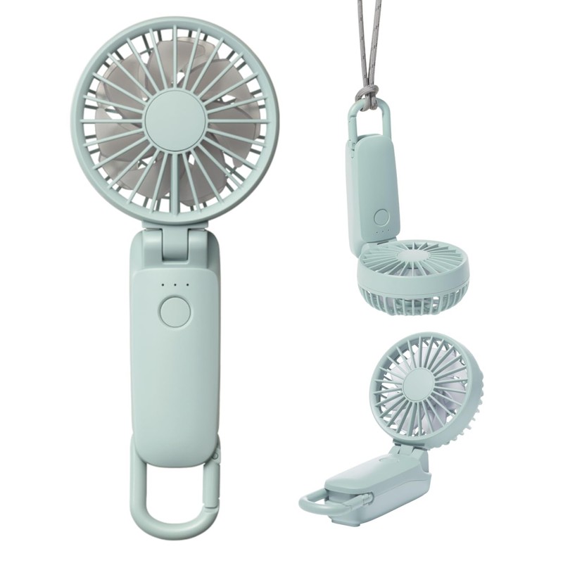 - Fan Structure: The unique "double reverse fan structure" of the rhythm where the two blades are positioned forward and backward. The rear fan collects air and delivers a tubular wind with the front fan. The 2 blades are compact in size, yet generates a large amount of air. 3 WAYS TO USE ANYWHERE: Use as a handheld fan, tabletop fan, or neck fan (hands-free). In addition, it comes with a carabiner that is convenient to carry around for events, travel, and outings