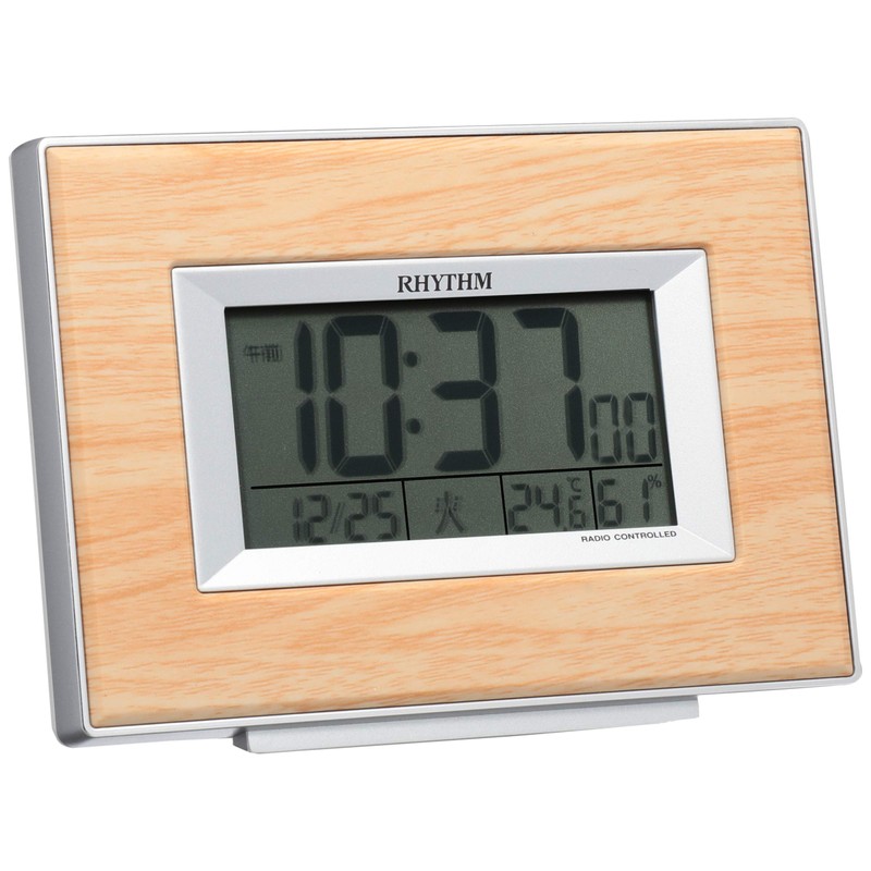 リズム(RHYTHM) 目覚まし時計 電波時計 デジタル 温度 ・ 湿度 カレンダー 付き 茶 (薄茶木目調) フィットウェーブD174 8RZ174SR07