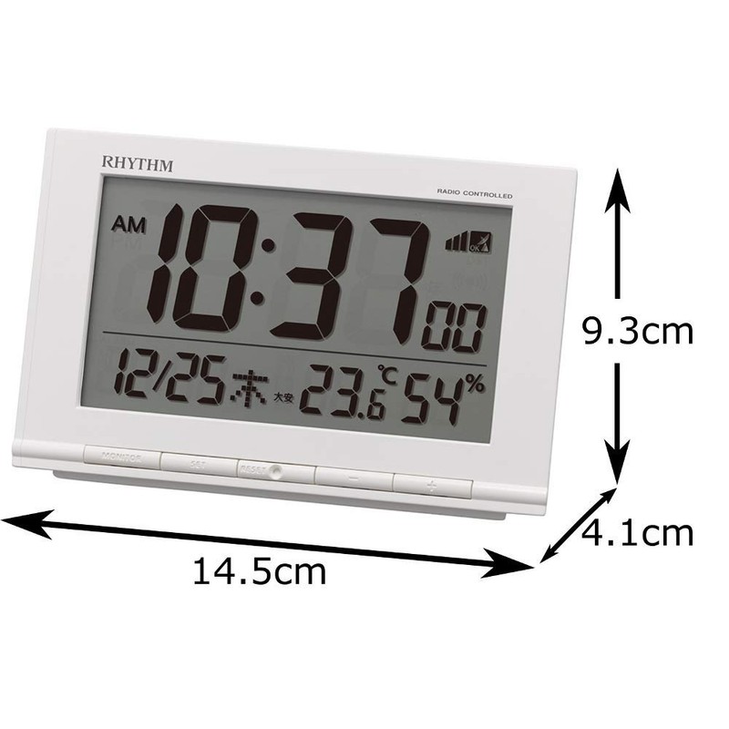 リズム(RHYTHM) 目覚まし時計 電波時計 温度計・湿度計付き フィットウェーブD193 白 9.3×14.5×4.1cm 8RZ193SR03