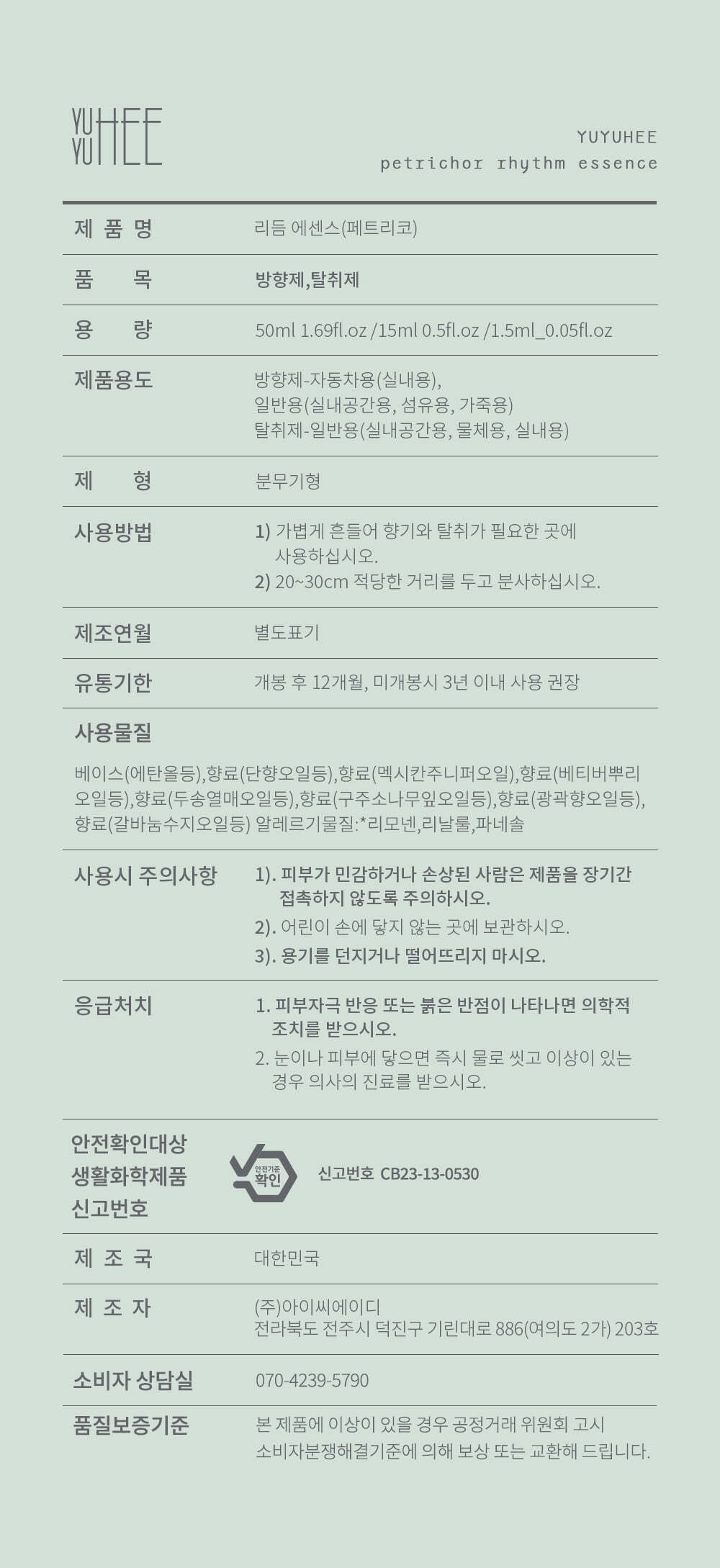 리듬에센스 페트리코 15ml