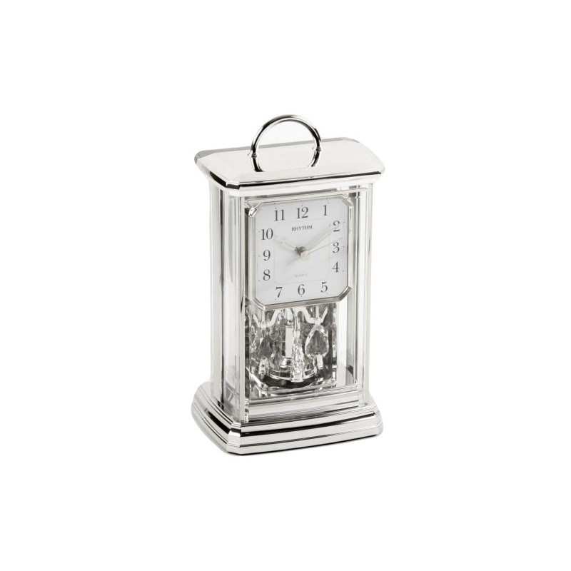RHYTHM Silver Tone Mantel Clock - Analogue 12 Hour Display Quartz Contemporary