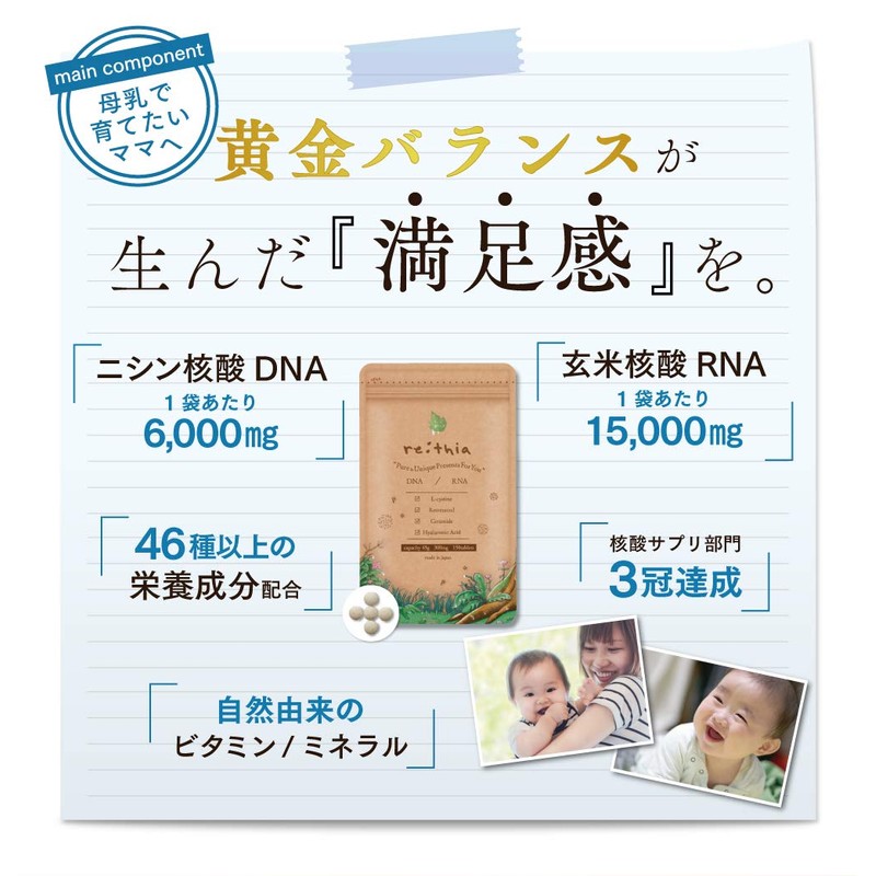 【公式】リティア(ri:thia) DNA/RNA核酸 1袋150粒入り 核酸の力で細胞から若々しく整える!口コミで瞬く間に広がった美白サプリ (1)