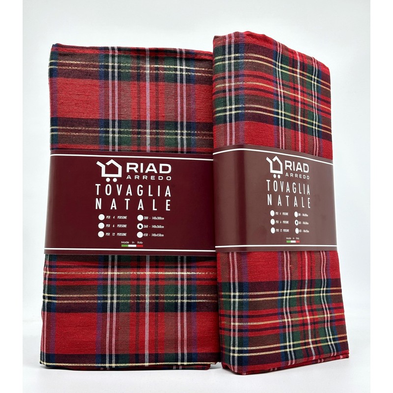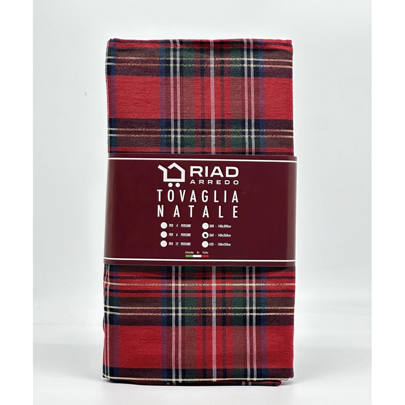 Riad Arredo Christmas Tablecloth Rectangular Dyed Fabric Original Lurex Tartan Made in Italy Tablecloth Christmas Made in Italy (Red, 140 x 300 cm, 14/16 People)